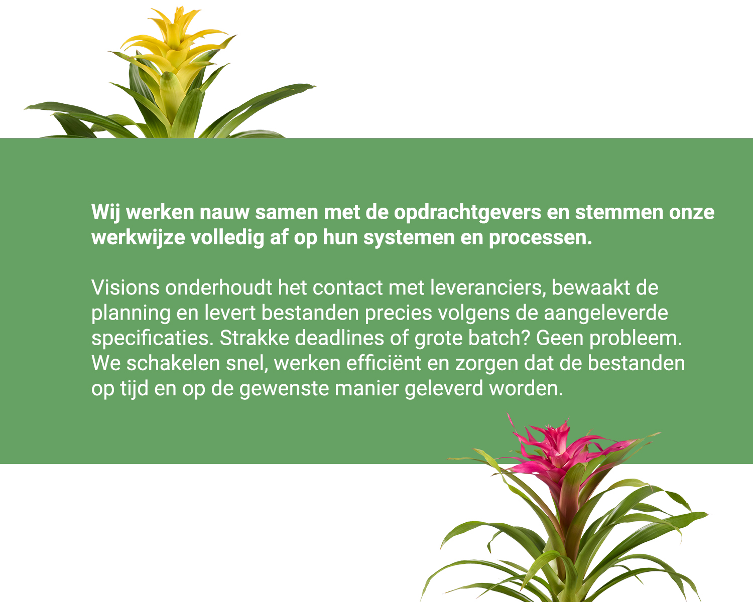 Hoe je een tulp niet forceert, hoe je bladtextuur tot leven brengt en hoe de kleur van een bloem of plant tot zijn recht komt. Daar zit het verschil tussen ‘goed genoeg’ en een beeld dat het product tot zijn recht doet komen.